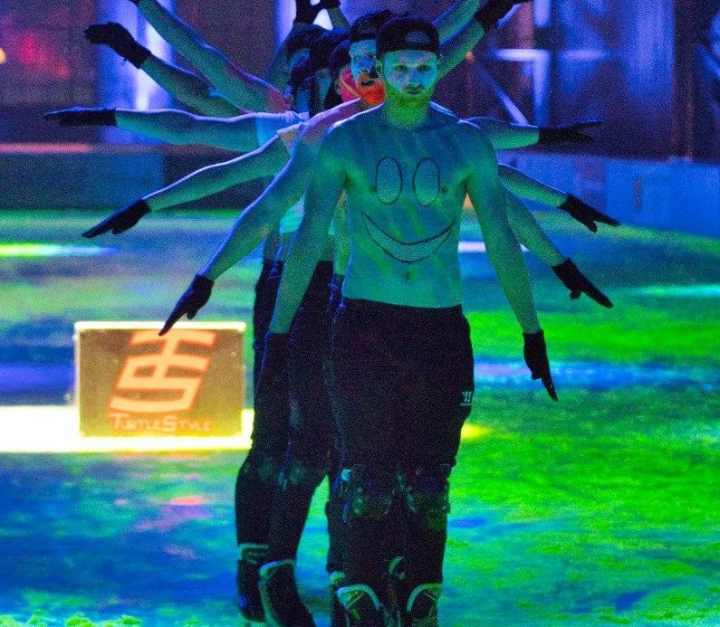 Unser Show Team besteht aktuell aus 12 Sportlern/Organisatoren. Jedes Jahr studieren wir eine neue Ice Freestyle Choreografie ein. Diese beinhaltet größtenteils Breakdance, HipHop und Freestyle - Elemente. Mittlerweile sieht man in unseren Shows auch Hebungen, die vom Eiskunstlauf (Paarlauf) übernommen worden sind. Bei unseren Auftritten kommt auch eine Sprungrampe zum Einsatz. Mit dieser Rampe werden Sprünge über Personen in einer Höhe von bis zu 2,20m gezeigt.